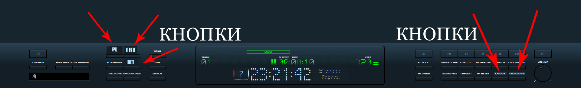 Вот так оно выглядит. Это основная и рабочая часть с выбранной кнопкой "DET" (К сожалению я не знаю как расшифровываются кнопки) Эти копки на скриншоте видны с левой стороны. С правой стороны тоже есть 2 кнопки. Вроде все.