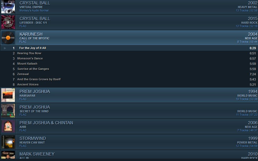 На всякий случай картинка .Проигрываемый альбом развернут, остальные свернуты. Ну и далее, как