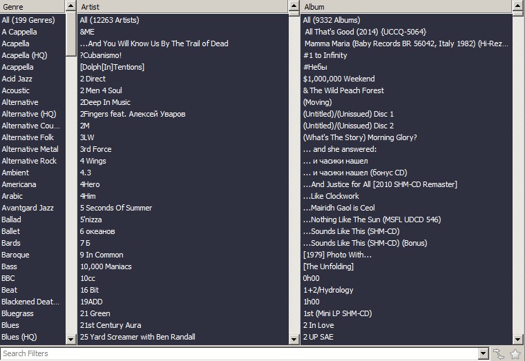 Но у меня не в этом фильтре прописано, а в панелях плейлиста ELPlaylist и Album List. Так же правило глобальной сортировки прописано в Preferences -> Shell Integration в поле Sort incoming files by: