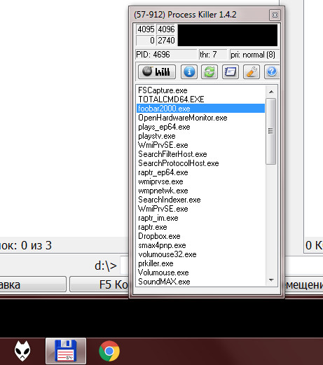 UPD. После перезагрузки фубар отказался запускаться вместе с DB. Снос DB без перезагрузки не помог. После перезагрузки, заработал f2k. Теряюсь в догадках. Сделал скрин с процессом foobar2000.exe и неактивным окном, а то перестану верить своим глазам.