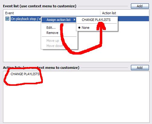 Г) В том же окне - ПКМ на CHANGE PLAYLISTS - Next playlist - либо укажите на другой плейлист, который захотите проиграть после предидущего - ОК