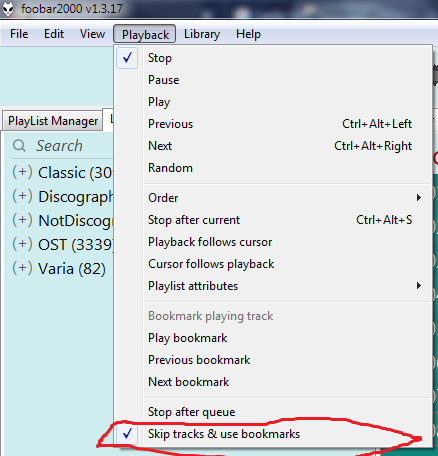 нашел только возможность в настройках делать запоминание времени воспроизведения одной последней музыкальной композиции это если выключить программу и включить заново.