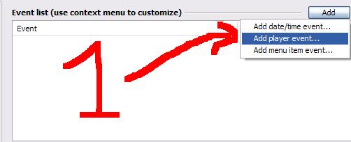 А) Event list - Add - Add player event - On playback stop - End-of-file signal
