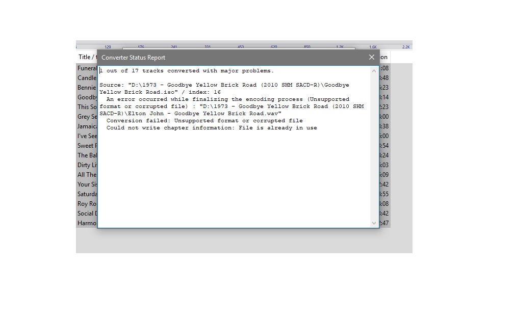 Подскажите пожалуйста в чем может быть проблема. При попытке конвертации sacd-iso в wav в конце возникает такая ошибка (скрин)