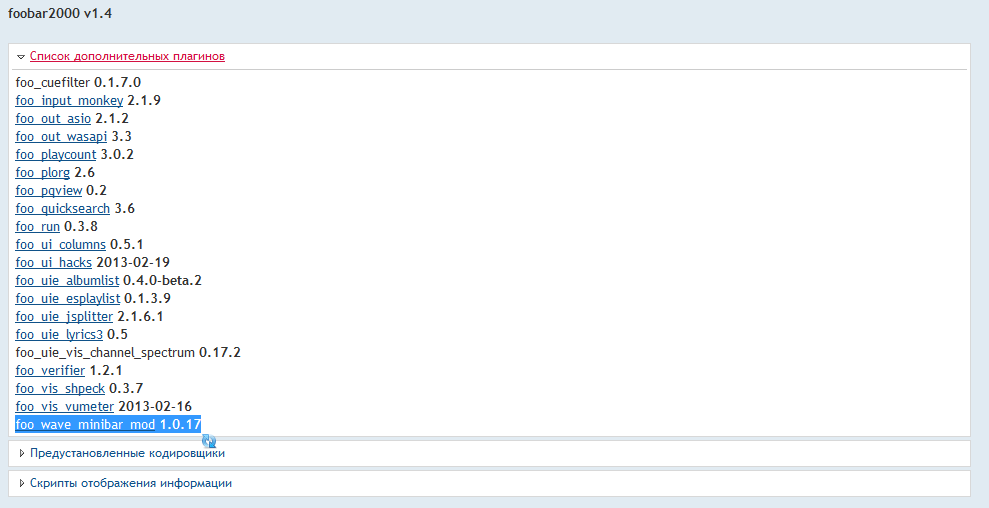 Список разделов foobar2000 Сборки Релизы сборок