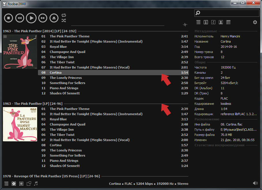 1) "Плоский" режим с фоновой обложкой - это просто список треков с разделением по альбомам или по папкам (если прилетели из Проводника)