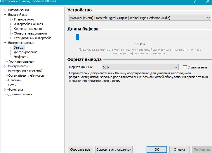 в принципе меня бы устроило если бы в фубаре было воспроизведение wasapi устройством по умолчанию, только не знаю, как это реализовать.
