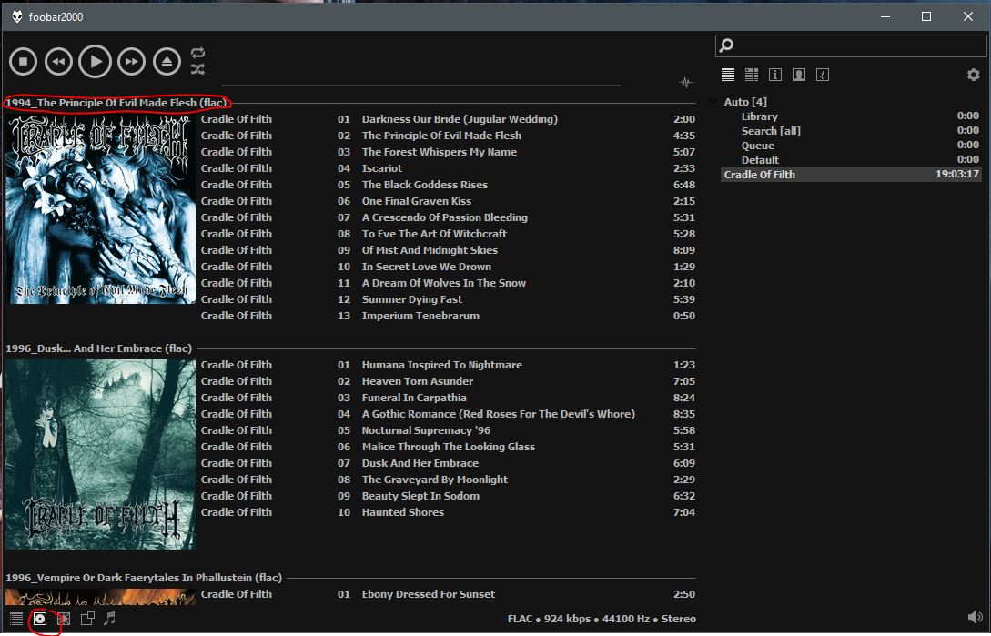 есть настройки из сборки на Alex Realist foo_uie_esplaylist.dll вот если их использовать то отображается все как нужно, а если вручную прописывать то нет(