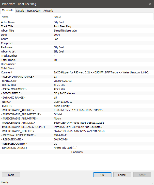 SpirtRoyal:Тэги прописываю с помощью плагина foo_musicbrainz