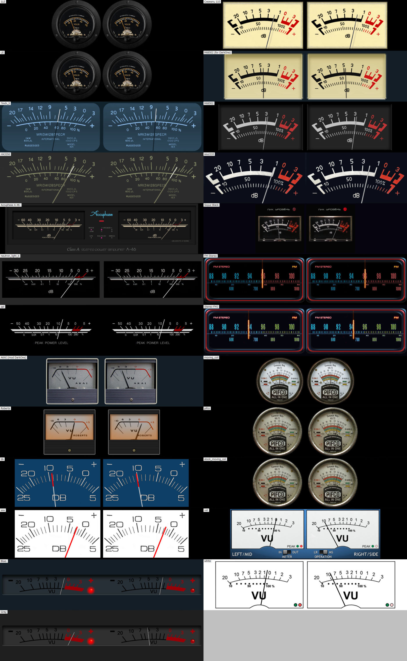 Haloweenhamster, вы молодец, что решили собрать все скины для VU Meter в одно место, но один большой архив не совсем удобен и не всем нужен. Помимо архива, гораздо удобнее было бы разместить фото и файлы по отдельности, где каждый выберет то, что ему нужно: