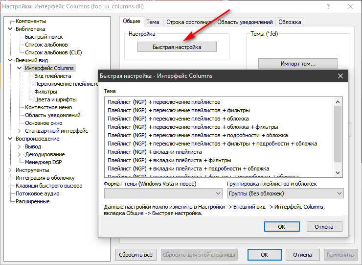 evil_v6.3.fcl - основная конфигурация для Columns UI, разделение по альбомам, имеет около 30 цветовых схем (в т.ч. и светлые).