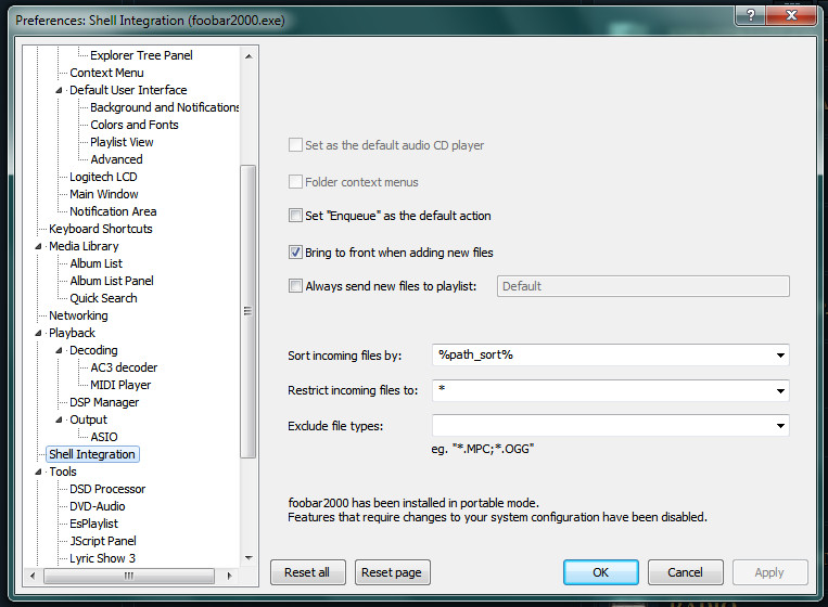 Используя эту сборку, в контекстном меню проводника нет строки "Проиграть с Фубар". В настройках Фубара написано, что это портативная версия, поэтому невозможно сделать изменения в проводнике. Ассоциации файлов также не делается, значки файлов в проводнике выглядят как-будто нет программы, с которой можно их открыть, хотя при двойном клике открывается Фубаром. С самого Фубара, через кнопки "Ореn..." также ничего не открывается, как-будто не видит совместимых файлов.