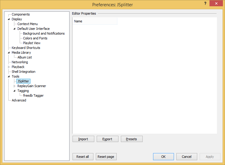 But if you switch to another Preference node and then back to JSplitter, all items appear normally.