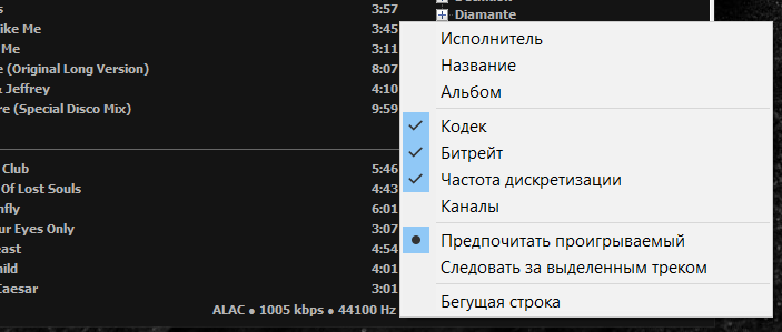 1) "Плоский" режим с фоновой обложкой - это просто список треков с разделением по альбомам или по папкам (если прилетели из Проводника)