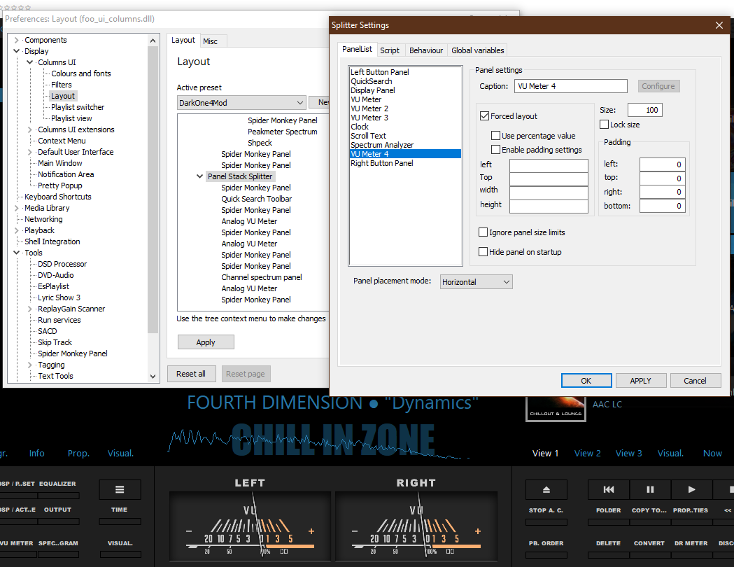 kutuzof, в дакван 4 - 1.3.8 вкладка Лэйаут совсем в другом месте, и Стэксплиттеров в ней нашел 3, строка VUmeter4 отсутствует в панели, которая открывается.. из них нужный методом тыка стремно искать, старая тема рухнула именно по этой причине..any idea?