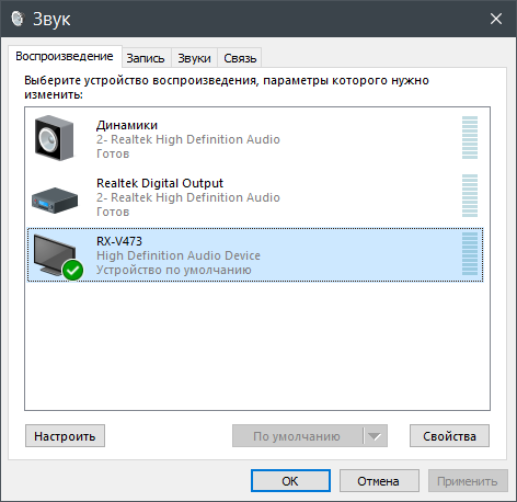 Предположу что и не настраивались никогда ранее в такой конфигурации. Наверное, когда по аналогу/оптике звук выводил тогда ОС видела ресивер как ресивер и не тупила. Но тогда ещё Win10 не изобрели...NikosColev:Да, но вот не пойму почему-то они перестали настраиваться...