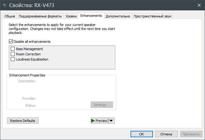 Azaza:Что выставлено на вкладке дополнительно? И на вкладке Enhancements?