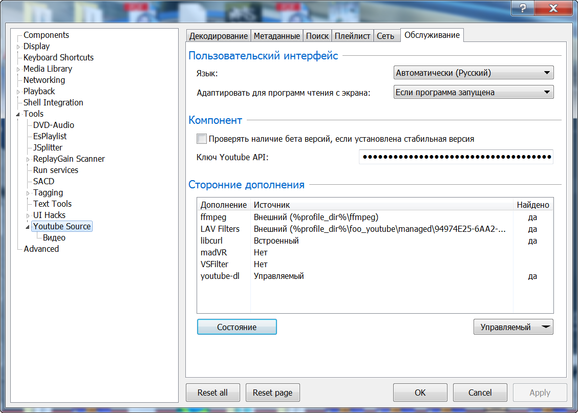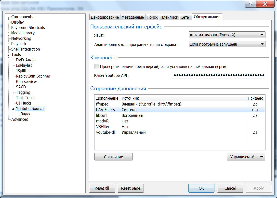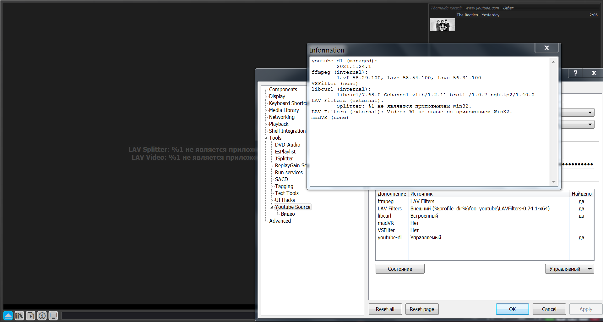 После установки сборки обязательно обновить компонент YouTube Source до самой последней версии включая beta.