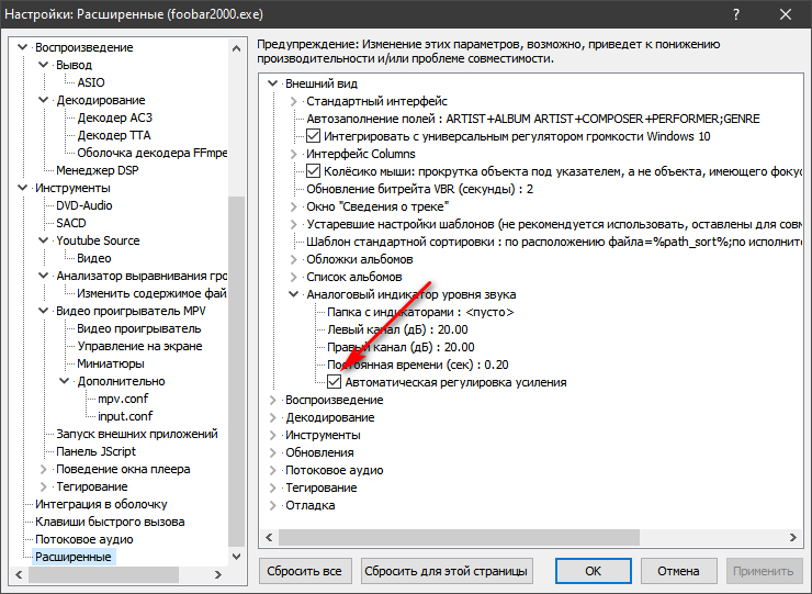 А какие нужны настройки? Если, вдруг, нужны настройки для родных фубаровских VU-метра и пик-метра, то таких настроек просто не существует. Но родные индикаторы показывают уровни выше 0 дБ, если реально сигнал такой.
