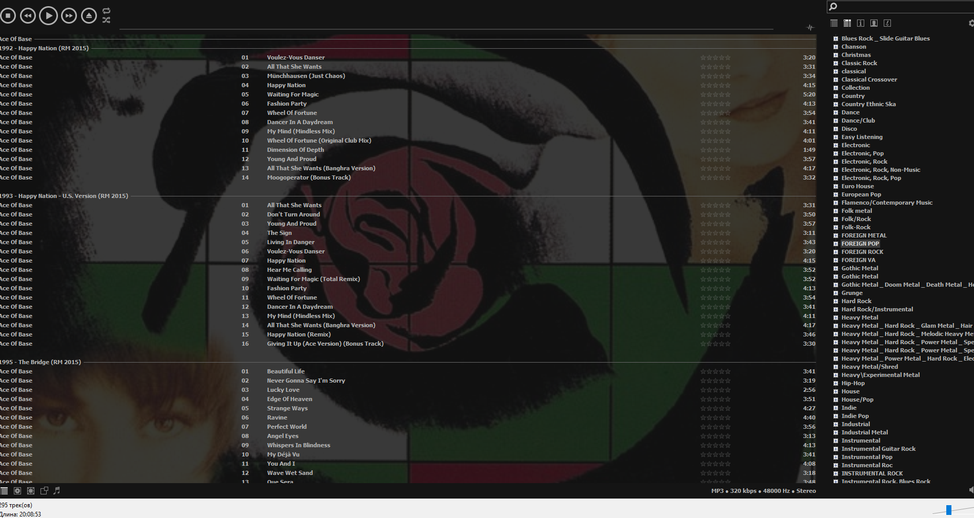1) "Плоский" режим с фоновой обложкой - это просто список треков с разделением по альбомам или по папкам (если прилетели из Проводника)