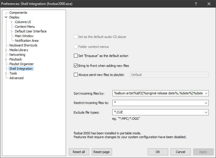 Вопрос: Можно ли при добавлении в плейлист папки сделать так, чтобы foobar2000 в этих папках видел только *.CUE файлы?