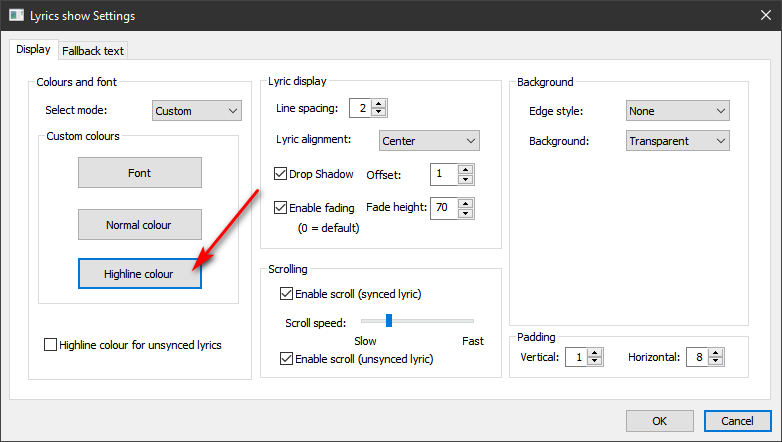 Просьба подсказать: а у Lyric Show Panel 3 это можно как-то настроить?