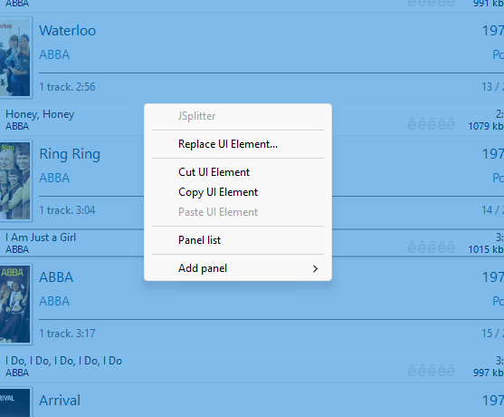 1. Панели добавляются в сплиттер в произвольном порядке, где с ними можно работать как с обычными окнами Windows, а именно: перемещать, изменять их размер, сворачивать, разворачивать, закрывать. Т.е. при работе с плагином foobar2000 превращается в приложение с MDI интерфейсом (Multi Document Interface). Для точного позиционирования панелей предусмотрено отображение координат и их редактирование "на лету" в заголовке окна панели (полезно при дизайне интерфейса сборки). Также имеется возможность настраивать цвета и шрифт заголовка окон панелей.