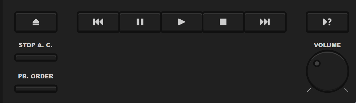 • Control Panel [средней кнопкой мыши на кнопке "OPEN" - вкл./выкл. автопереключение VU Meters в группе "Control Panel"; колесом на кнопке "OPEN" - пред./след. VU Meter в группе "Control Panel"; средней кнопкой мыши на кнопках управления воспроизведением - переключит цвет этих (и названия других) кнопок; средней кнопкой мыши на кнопке "Stop A. C." - переключит цвет названия кнопки (когда функция включена); средней кнопкой мыши на кнопке "PB. Order" - переключит её на две маленькие (пред./след.); средней кнопкой мыши на одной из дополнительных кнопок - переключит их на другие кнопки (функции)];