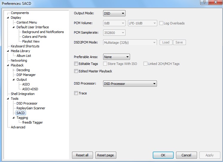 Но появилась другая: Почему то в разделе Tools -> SACD при Output Mode: DSD файл DSD64 проигрывается без звука (на файлах DSD128 и больше не пробовал пока), хотя в разделе Tools -> DSD processor опция Use DSD processor включена. Как это можно справить?