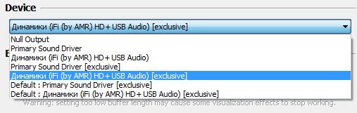 Здравствуйте! Решил поставить новую версию foobar специально ради монопольного (exclusive) режима WASAPI, так как в версии foobar 1.6.2 был, как я понял, WASAPI shared при выборе моего цапа в "Device", что мне не подходило по той причине, что мой цап ifi zen dac перестал менять цвет индикатора входящей частоты при значении больше 44100 Hz и в "Audio Control Panel" моего цапа в разделе "Current Sample Rate" больше 44100 Hz не показывало. Цап менял цвет индикатора когда я использовал ASIO, но мне знающие люди объяснили, что ASIO устарел и лучше использовать WASAPI. Так вот: при выборе "Динамики (IFI (by AMR) HD+ USB Audio [exclusive]" вылетает ошибка "Unrecoverable playback error: Exclusive mode not allowed". Как эту ошибку исправить? Может всё-таки перейти обратно на ASIO в моей ситуации будет лучше?