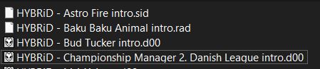 Имеется архив музыки из кейгенов. Подскажите, есть ли плагины для файлов .d00 и .rad ? Для .d00 есть foo_ganbatte, но он очень старый и при воспроизведении плеер крашится, а для .rad я вообще ничего не нашел.