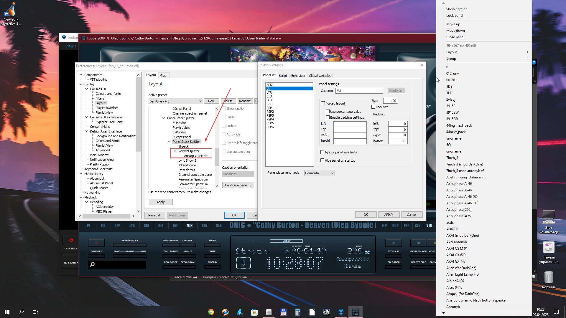 огромное спасибо, но увы. всё так же в вертикальном сплиттере нет analog VU meter. и как его добавить не знаю. импорт вашего файла настройки ни чего не добавил.больше мучать не буду . пользуюсь (smp) или надо создовать кучу папок и делить VU и расклаыват по разным папкам. тогда можно пользоваться всеми VU. буду ковырять дальше. спасибо за помощь. такое ощёщение что плеер не видит какую то настройку или библиотеку или ещё чего.