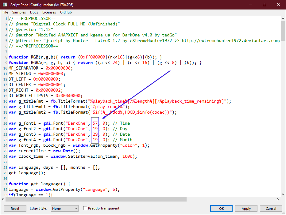 по вопросам сборок лучше писать в соответствующей теме :smile: ) вообще лучше использовать шрифт "DarkOne", панель заделана под него. Но если хотите, то "Shift + ПКМ -> Configure..." и меняйте значения выделенного на скрине.