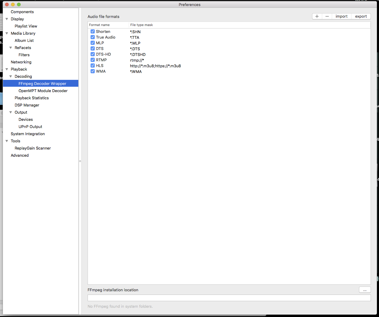 Foobar2000 for Mac- плей лист загружает, а при попытке воспроизведения выдает сообщение-