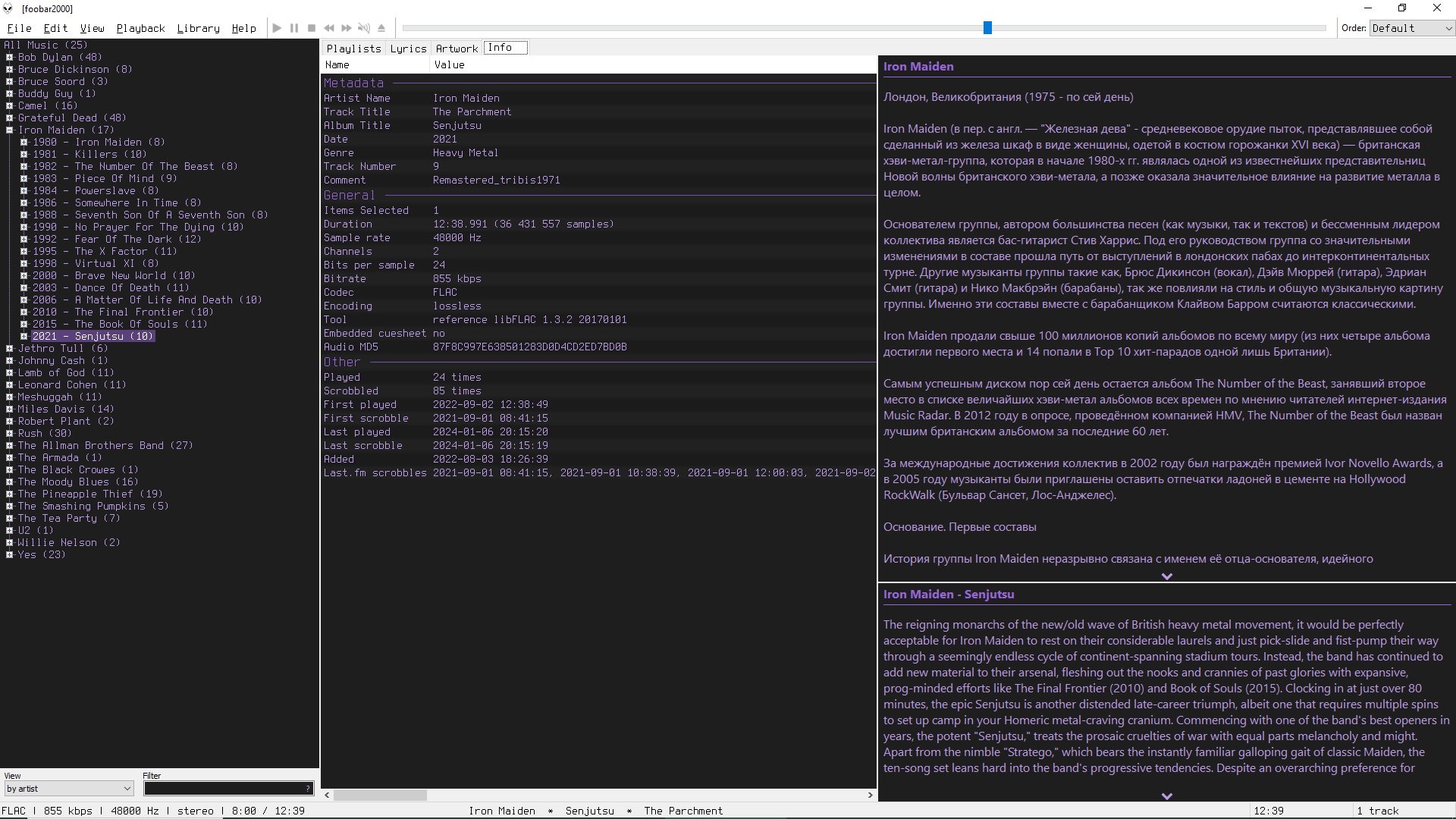 Зачем? Ответа дать не могу. Слушаю музыку, что звучит в данный момент - читаю историю группы, постоянно переключаюсь на плеер чтобы посмотреть - сколько до конца композиции, спектрограму, слова... Я просто идиот наверное. :smile: