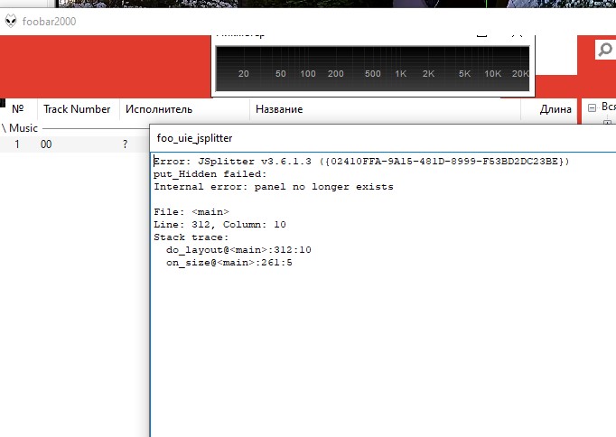 И есть ли возможность визуализатор частот заменить, чтобы там шкала частот была, пробовал вставить foo_enhanced_spectrum_analyzer вместо vumeter , оно ругается на ошибки и чето все красным окно стало