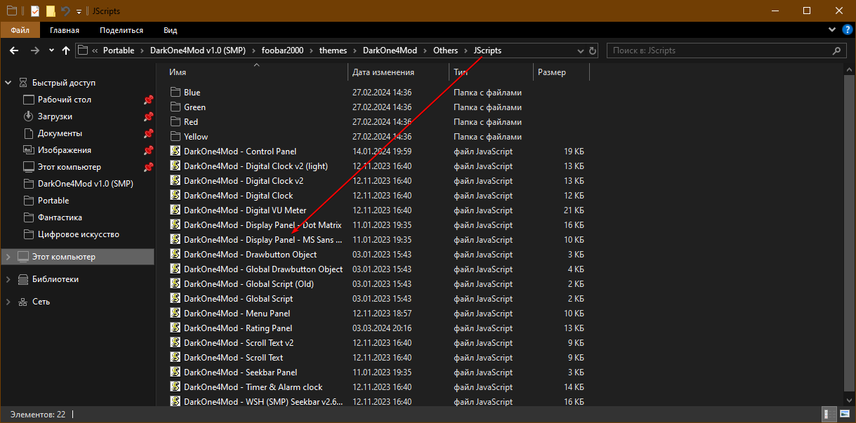 • В папке ".\themes\DarkOne4Mod\" находятся дополнительные файлы конфигурации (*.fcl) для смены цветовой схемы