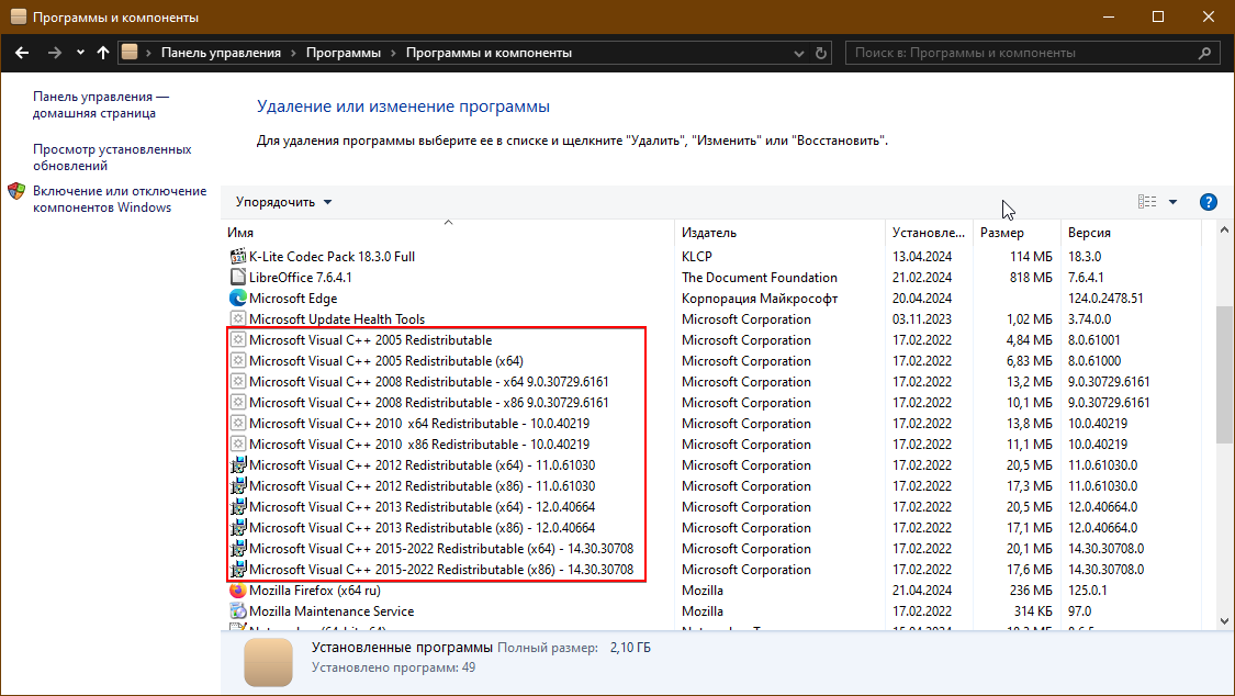 Для работы некоторых компонентов может потребоваться наличие в системе библиотек Microsoft Visual C++