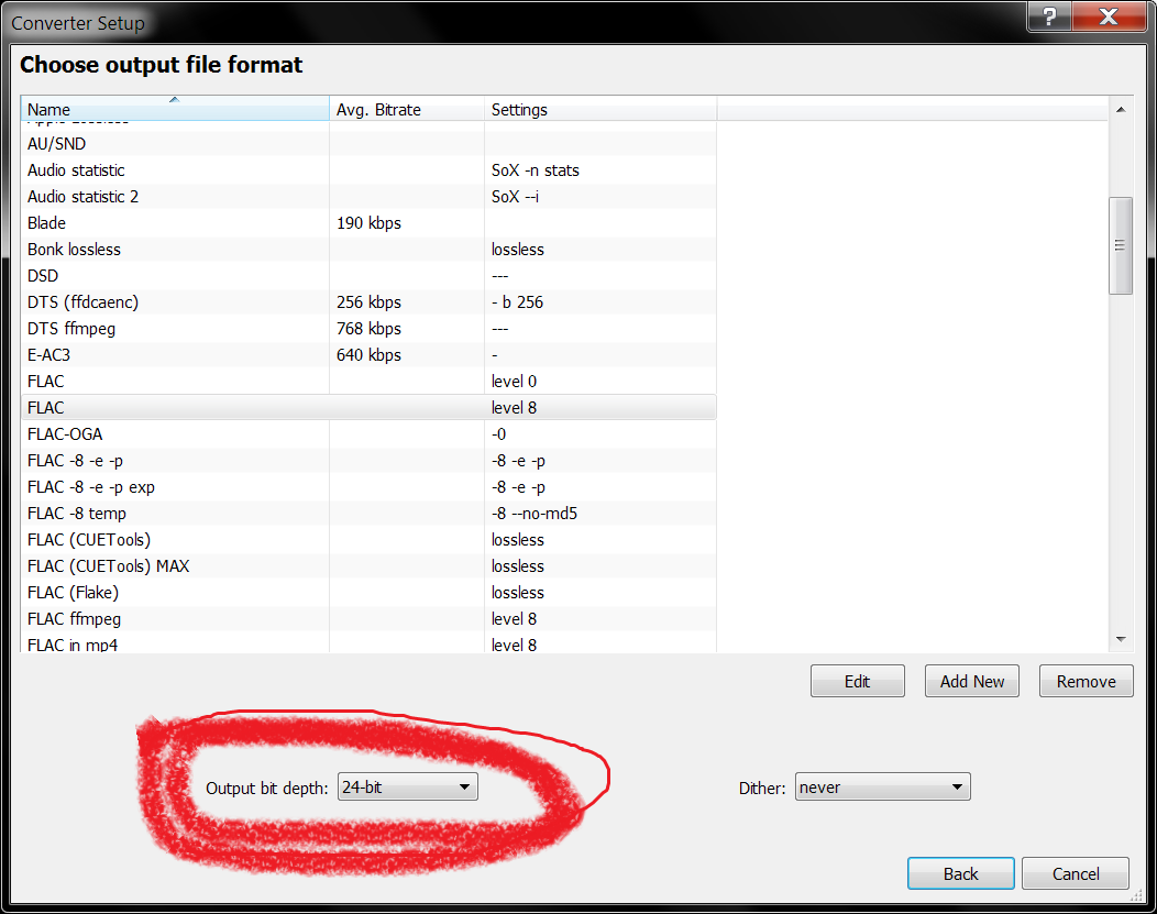 Encoder stream format: 352800Hz / 2ch / 1bps