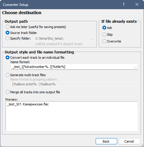 Плагин не нужен. Эти операции конфигурируй в конверторе (ПКМ на выделенных треках)