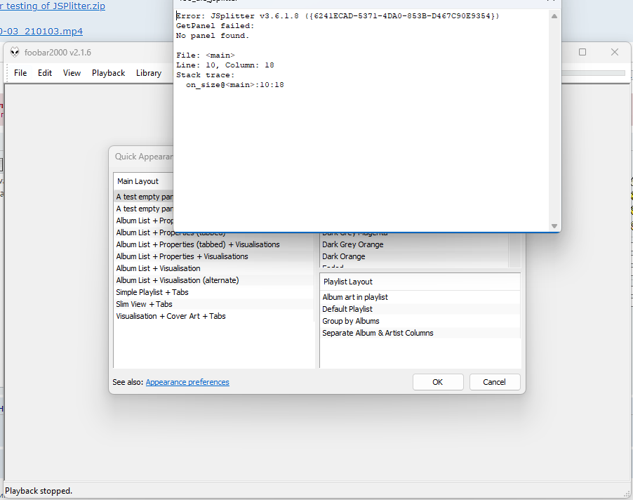 Наконец, вы открыты для исправлений ошибок или улучшений SMP? Прямо сейчас единственная разработка SMP выполняется вами. Остались некоторые важные ошибки, например, объекты ActiveX, подключающиеся к Интернету, которые приводят к сбою foobar2000 при перезагрузке/выключении панели. При необходимости могу предоставить более подробную информацию. В частности, 'WinHttp.WinHttpRequest.5.1' или 'Microsoft.XMLHTTP' и их варианты.