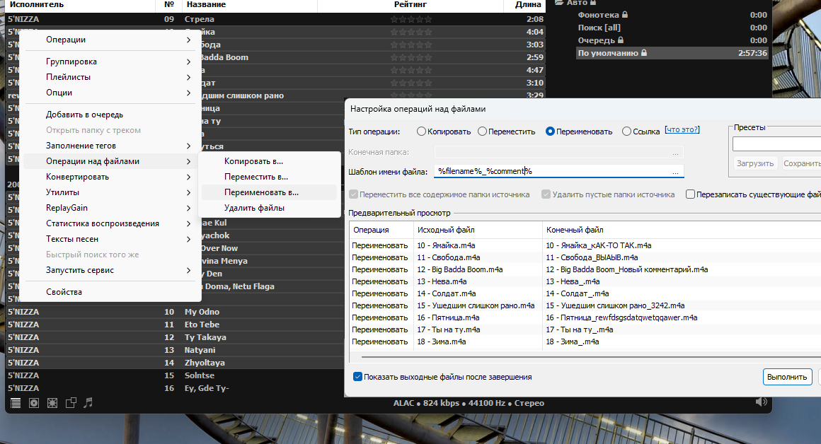 И тут-же попутно созрел вопрос, :help: по примерно такому-же методу работает и переименование трека в плейлисте, все отлично переименовывает, но есть одна непонятка, растолкуйте пожалуйста. В плеере то оно переименовалось а в проводнике и тотал командере по прежнему под старым именем находится трек. Хотелось бы чтобы и в тотал командере и проводнике тоже название автоматически применялось.