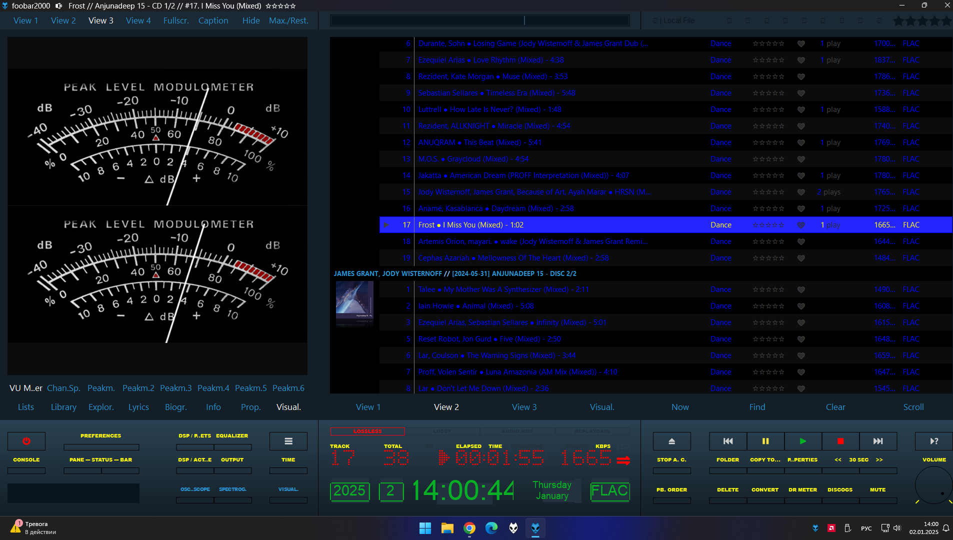 - В панели "Lists" можно выбрать различные виды отображения. Для выбора желаемого вида нужно зайти в настройки "Preferences\Display\Columns UI\Playlist switcher -> Use title formatting for playlist titles:" и поменять значения view, lock, data и separator.