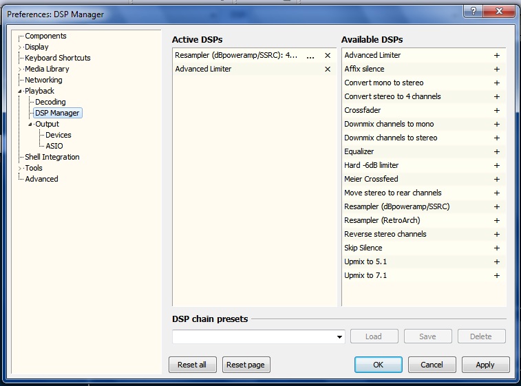 5) В окне настроек Active DSPs у меня присутствует плагин Advanced Limiter. Вроде бы он необходим, чтобы при регулировке значений Preamp Gain не появлялись искажения звука.