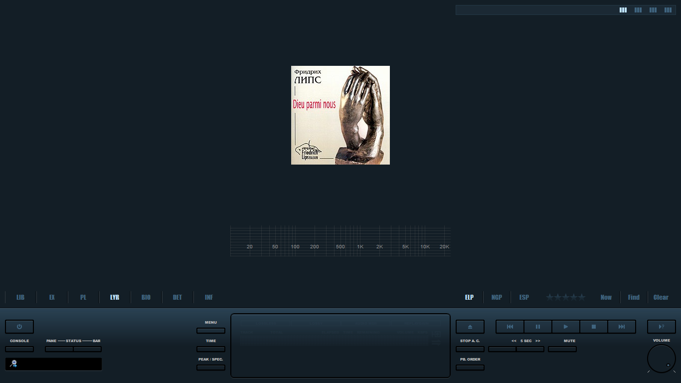 DarkOne_4_JS_v1.5.6_final Версия плеера 1.5.6 final, версия JScript Panel v2.3.6.1 by marc2003 - kbuffington (foo_jscript_panel.dll), Columns UI 0.5.1 (foo_ui_columns.dll). Системные требования WIN 7 и выше.