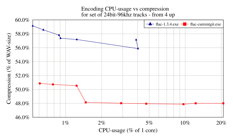 Что-то текущий разработчик FLAC в ударе, за последние дни много чего интересного смержил. Изменения касательно улучшения сжатия тоже.