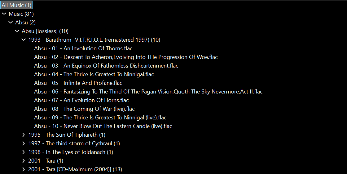 1. Если выбрать область библиотеки как F:\, то в Album list это будет выглядеть как: Disc F