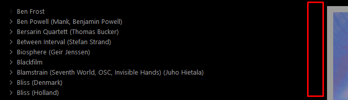 Album list panel