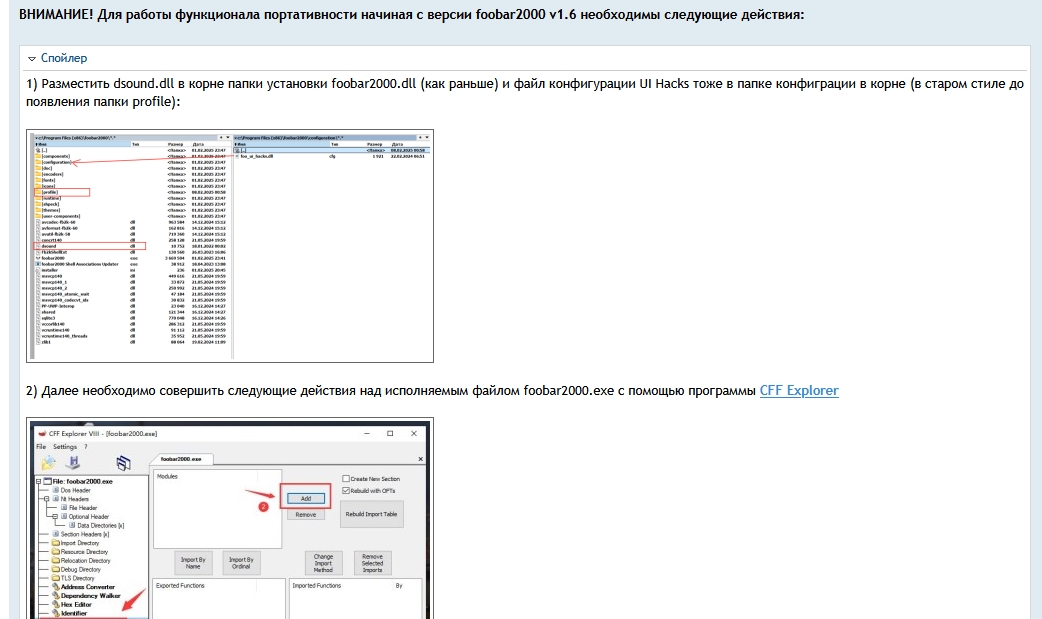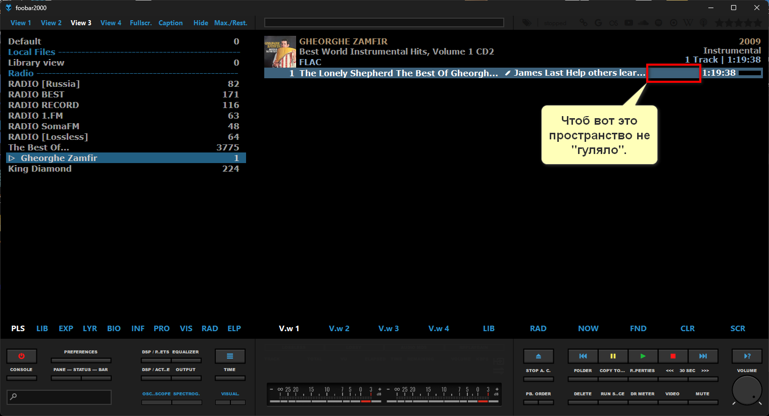- Размер шрифта в Columns UI можно изменить (из-за несовместимости с компонентом "UI Hacks") только обходным путём, временно отключив компонент "foo_ui_hacks". Переименуйте папку компонента "foo_ui_hacks" в "_foo_ui_hacks", измените размер шрифта на нужный, затем снова измените имя папки на "foo_ui_hacks".