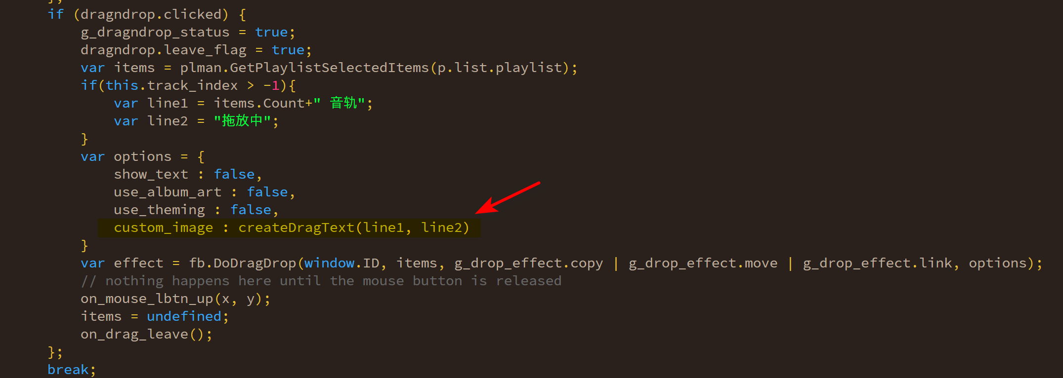 execute of fb.DoDragDrop function will cause crash of the panel, due to the custom_image option.